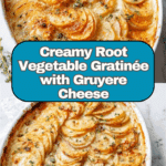 Keywords: root vegetable gratin, gratinee recipe, baked vegetable casserole, vegetarian side dish, cheesy gratin, holiday side dish