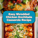 This Shredded Chicken Enchilada Casserole is a flavorful, layered Mexican-inspired dish featuring tender shredded chicken, sautéed vegetables, black beans, corn, and melty cheese baked to perfection. Perfect for a comforting family dinner, it combines classic enchilada flavors with the ease of a casserole.