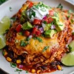 This Shredded Chicken Enchilada Casserole is a flavorful, layered Mexican-inspired dish featuring tender shredded chicken, sautéed vegetables, black beans, corn, and melty cheese baked to perfection. Perfect for a comforting family dinner, it combines classic enchilada flavors with the ease of a casserole.