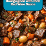 Slow Cooker Beef Bourguignon is a comforting, rich stew that transforms simple ingredients into a deeply flavorful meal. Using a one-pour wine mixture simplifies the process while delivering classic French flavors. It’s perfect for a cozy dinner with minimal hands-on time.