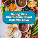 Keywords: spring kids charcuterie board, kids snack board, healthy kids snacks, kid-friendly charcuterie, no-cook snack platter, fruit and veggie snack board