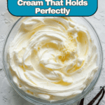 Stabilised whipped cream is perfect for adding a fluffy, creamy texture to desserts without losing its shape. This simple recipe keeps your whipped cream firm for longer, making it ideal for cakes, pies, and decorative toppings.