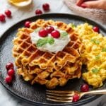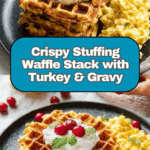 Transform your leftover stuffing into a fun and delicious meal with this Stuffing Waffle Stack. Crispy on the outside and tender inside, these waffles make a perfect base for all your favorite Thanksgiving toppings.