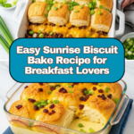 Sunrise Biscuit Bake is a hearty and satisfying breakfast casserole featuring flaky biscuit dough layered with savory sausage, melted cheddar cheese, and green onions, all soaked in a seasoned egg and milk mixture, then baked to golden perfection. It’s perfect for a family brunch or a comforting morning meal.