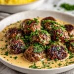 Keywords: Swedish meatballs, creamy gravy, ground beef, ground pork, comfort food, classic recipe, meatballs sauce