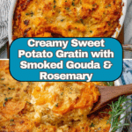 Keywords: sweet potato gratin, smoked gouda, rosemary, creamy side dish, baked casserole, cheesy gratin, autumn recipe, holiday side