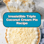 Keywords: Coconut cream pie, coconut dessert, creamy pie, coconut custard pie, triple coconut pie, homemade pie crust