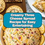 Keywords: three cheese spread, cheese dip, appetizer, party snack, creamy cheese spread