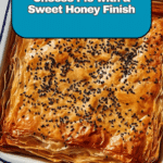 Keywords: Tiropita, Greek cheese pie, filo pastry, feta, ricotta, savory pie, sesame seeds, honey drizzle, baked cheese pie