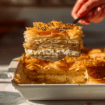 - Top the pie with filo layers: Place 6 more layers of filo sheets on top, brushing each layer generously with the butter and oil mixture to ensure a crisp and golden finish.