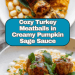 Keywords: turkey meatballs, pumpkin sage sauce, fall recipes, comfort food, creamy pumpkin sauce, autumn dinner, healthy meatballs, cozy meal