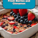 This Vegan Baked Oatmeal with Berries is a wholesome and delicious breakfast option, combining ripe bananas, plant-based milk, rolled oats, and fresh blueberries and strawberries. Baked to perfection, it offers a warm, comforting meal suitable for vegan diets and perfect to enjoy as a nutritious start to your day.